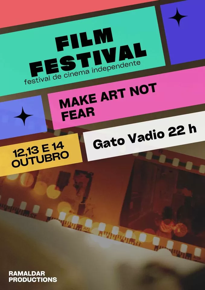 Ramaldar Productions O Festival de Cinema Make Art Not Fear é a mostra do que melhor se faz no cinema independente mundial, com atenção ao cinema feito em locais onde ocorre guerra ou outras calamidades. Em parceria com entidades oficiais da Ucrânia dedicamos o 1o dia do Festival ao Cinema Ucraniano. Dispatches of War. Um movimento cinematográfico mundial que apoia a divulgação do cinema ucraniano. No dia 2 e 3 temos a seleção internacional partindo do princípio que a Arte tem mais impacto do que o medo na conjetura política mundial. Uma viagem universal única que atravessa fronteiras, géneros, raças, políticas, economias e nos chega como um fluxo artístico límpido. – Bruno Miguel Resende
