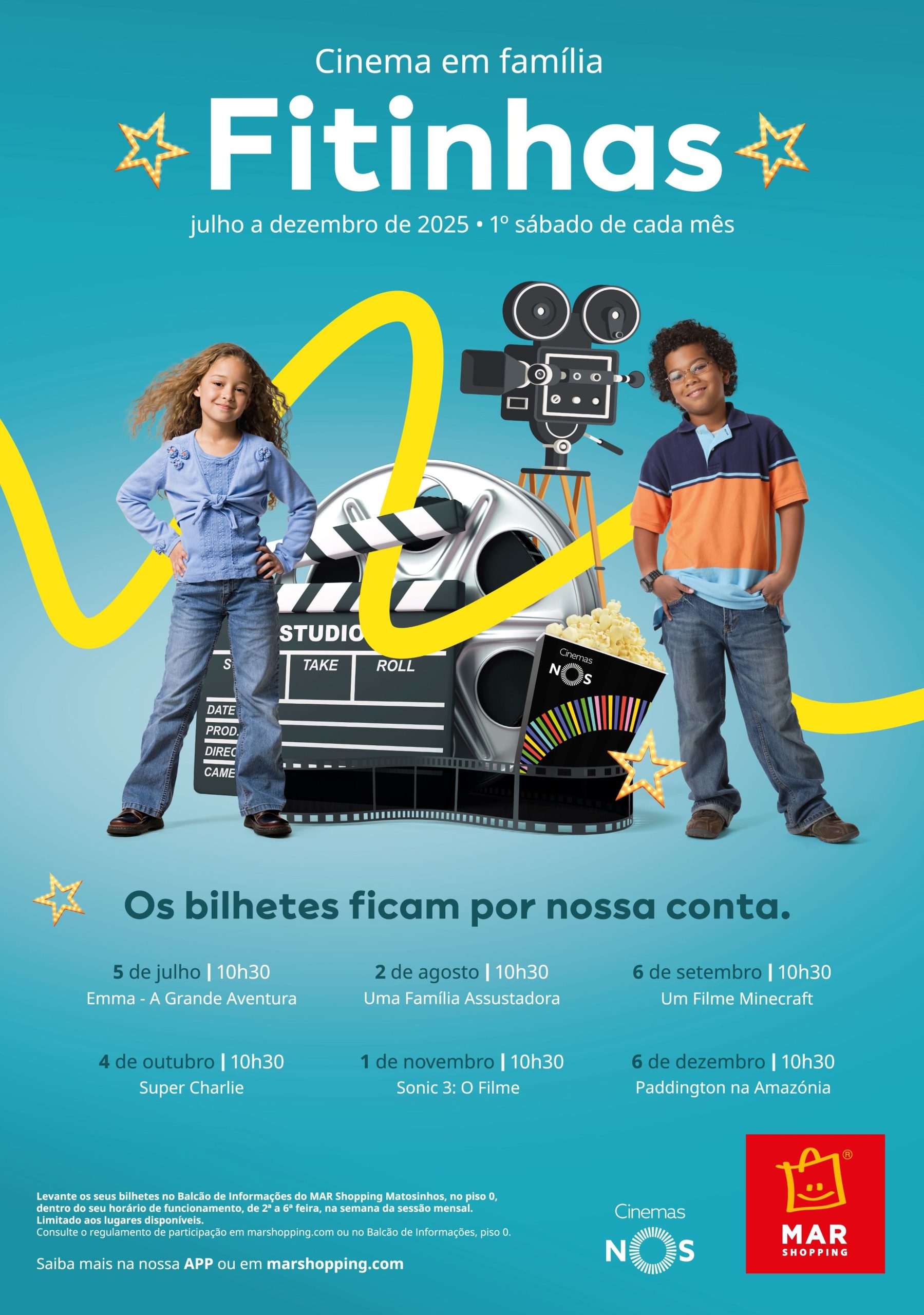 O 2º semestre de 2025 trouxe mais uma temporada de “Fitinhas” com sessões gratuitas de cinema infantil para toda a família. Os maiores sucessos do cinema de animação, estreados nos últimos meses, estarão em exibição nos cinemas NOS do MAR Shopping Algarve e do MAR Shopping Matosinhos entre julho e dezembro. Na programação do 2º semestre do “Fitinhas” estarão filmes repletos de ação, aventura e muita emoção, apresentando um cartaz comum aos dois meeting places.