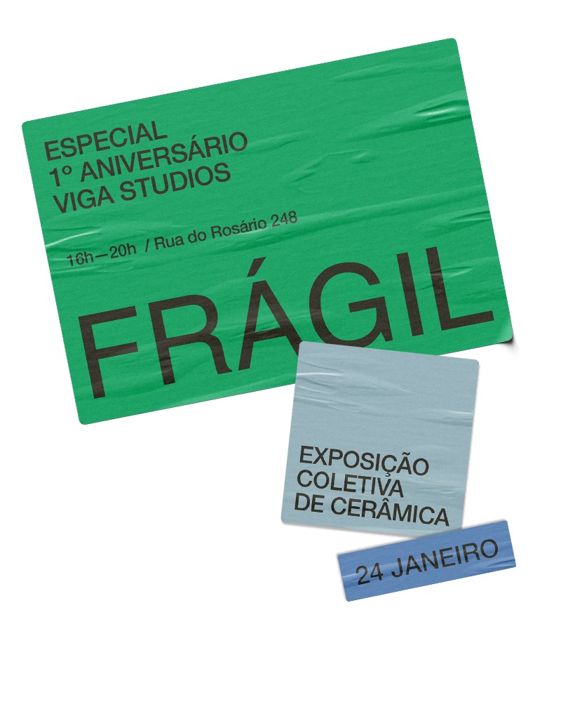 FRÁGIL celebra o primeiro ano da Viga Studios com uma exposição coletiva de cerâmica que nasce do encontro – e do possível choque – entre cinco artistas residentes. Frágil refere a etiqueta colada às caixas de cerâmica, mas também tudo o que é sensível: a matéria, o gesto, as colaborações, os começos e a construção de um espaço comum.