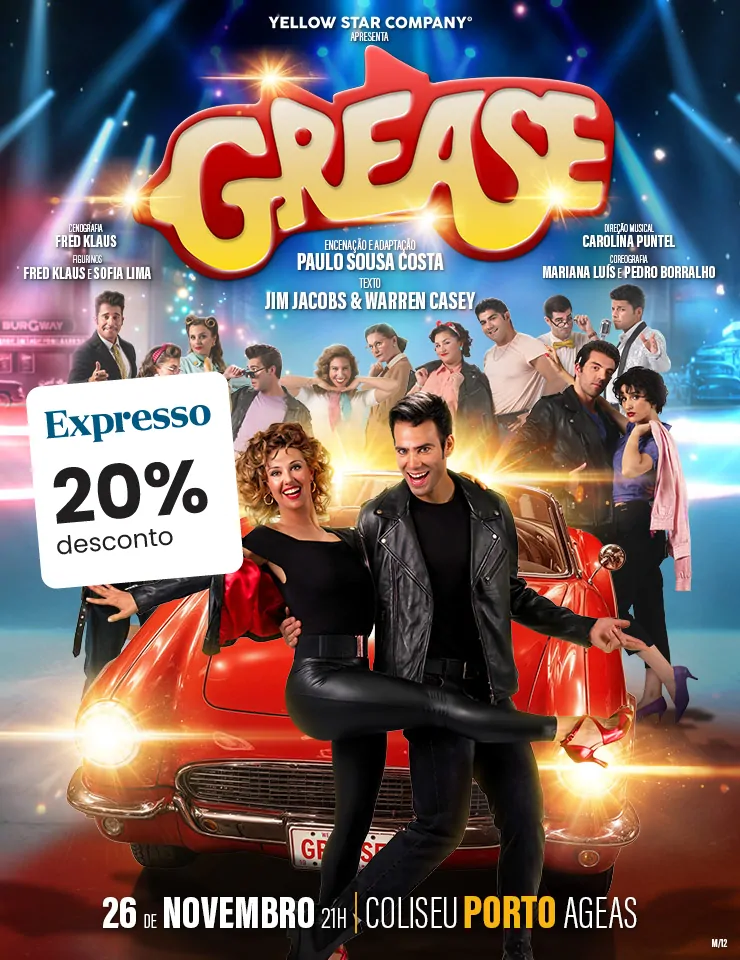 O fenómeno “Grease, o Musical” chega ao Coliseu Porto Ageas no dia 26 de novembro de 2025, às 21h00, numa produção da Yellow Star Company que promete transportar o público de volta aos vibrantes anos 50.
