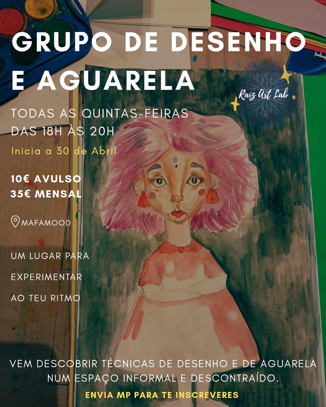 Todas as quintas-feiras, das 18h às 20h, abrimos as portas a quem quer experimentar, aprender e evoluir no desenho e na aguarela, ao teu ritmo, sem pressas e sem pressões.