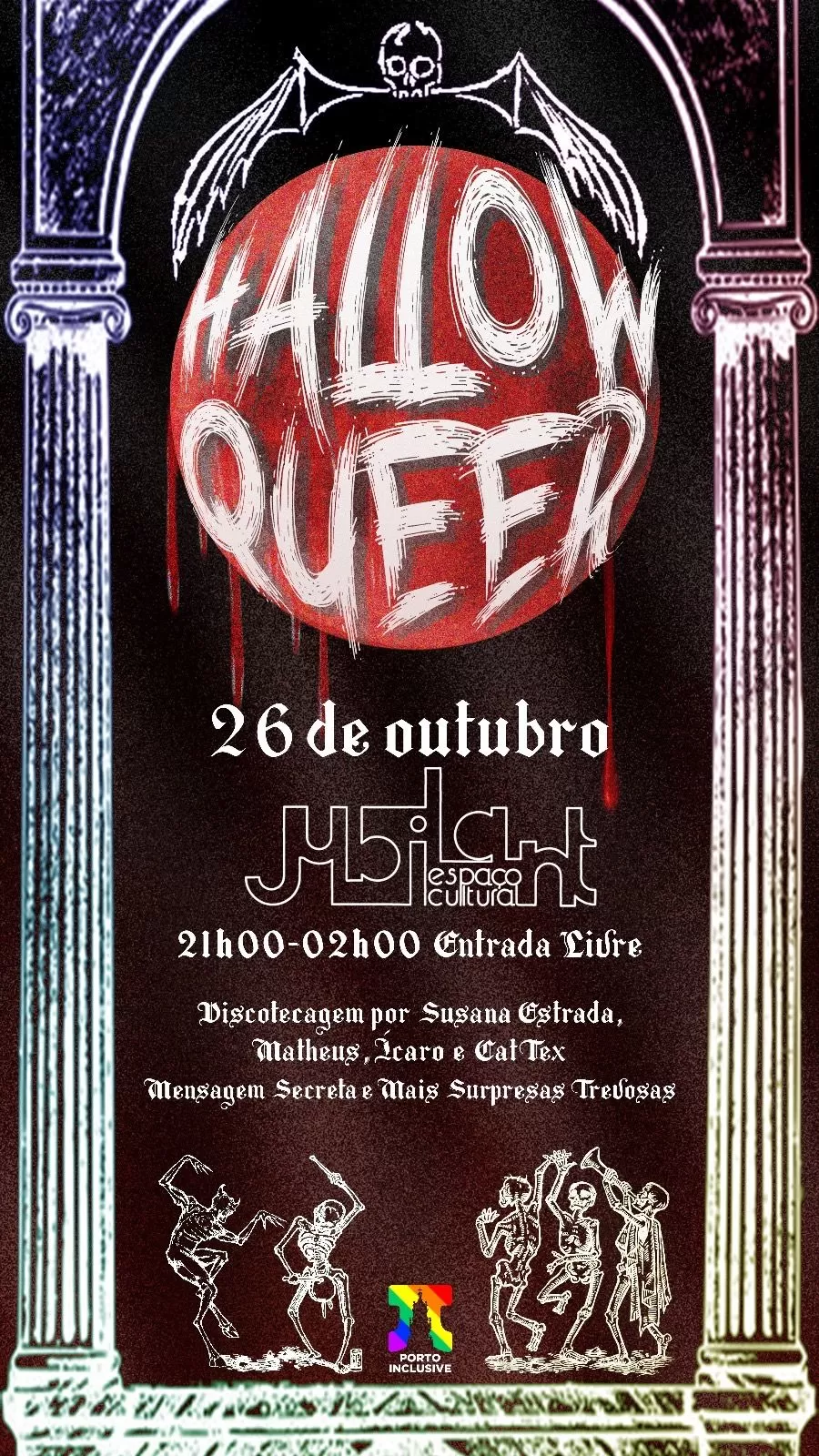 Prepara-te para a noite mais queer do Halloween! O Espaço Cultural Jubilant abre as portas para a nossa festa Hallowqueer no dia 26 de outubro, onde a diversão e a inclusão estarão à solta.