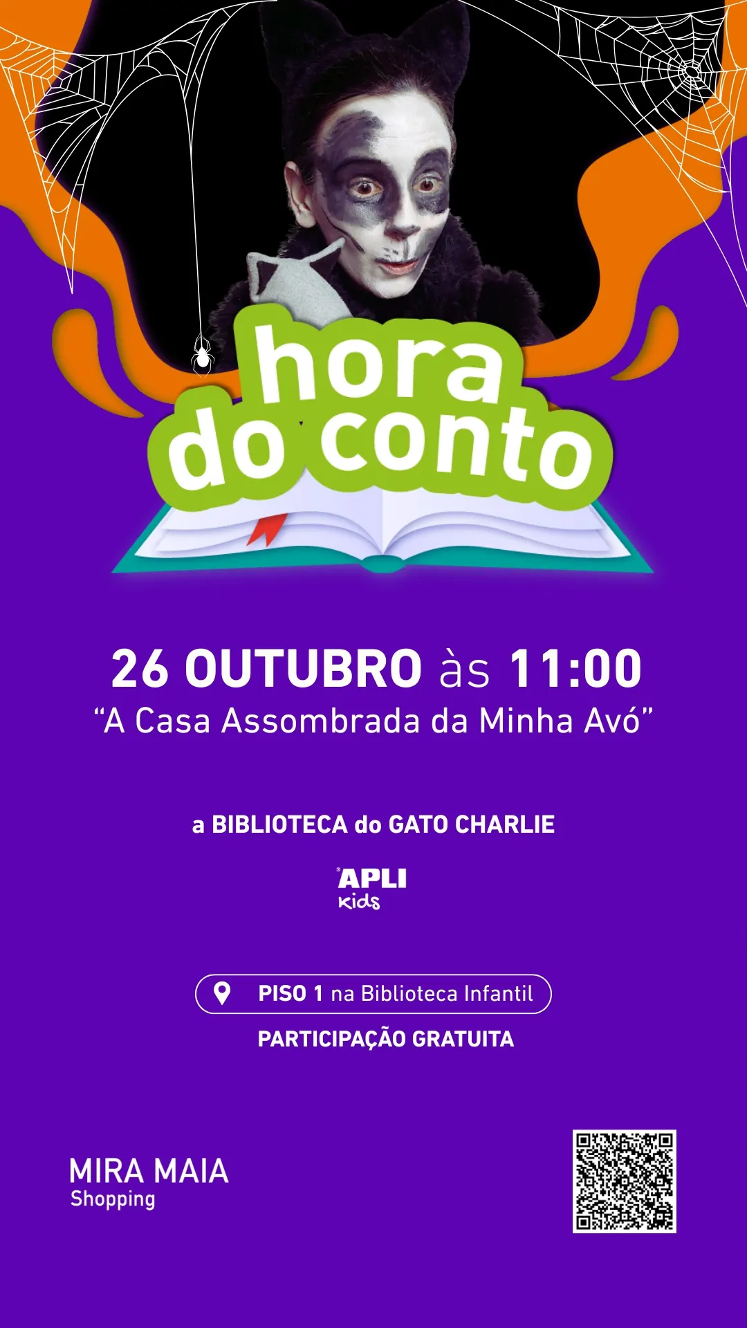 Com um tema especial para o Dia das Bruxas, o Mira Maia Shopping apresenta a próxima sessão da “Hora do Conto – A Biblioteca do Gato Charlie”, que incluirá a leitura do livro “A Casa assombrada da minha avó”, de Meritxell Marti e Xavier Salomo.