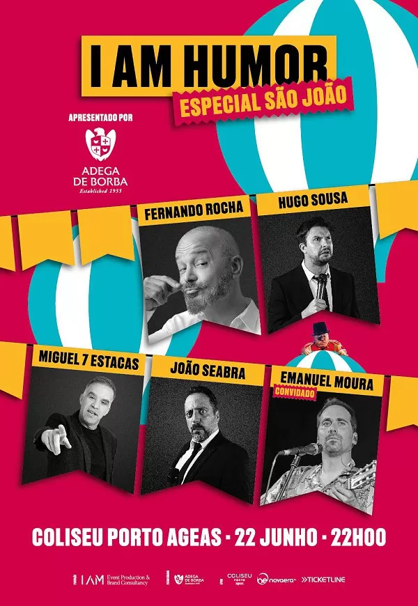 Em 2024 o I AM Humor está de volta, com uma edição Especial de S. João, apresentada por Adega de Borba.