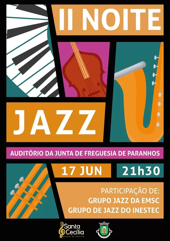 A II Noite de Jazz conta com a participação do Grupo JAZZ da E.M.S.C. e do Grupo JAZZ do INESTEC, será no Auditório da Junta de Freguesia de Paranhos, Entidade Pública que apoio esta Escola.