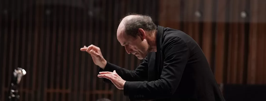 – Na saída da Sala Suggia, utilize a porta mais perto do seu lugar, seguindo as indicações colocadas no chão.