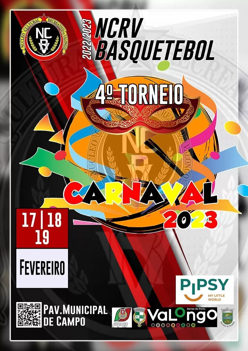 O Núcleo Cultural e Recreativo de Valongo, com o apoio do município, vai organizar, entre 17 e 19 de fevereiro de 2023, nos Pavilhões Municipais n.º 1 e 2 de Campo, o IV Torneio Internacional de Carnaval em Minibasquete.