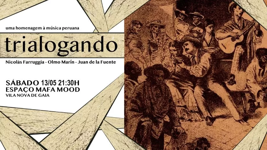 3 músicos 3, com cajón, guitarras e vozes. Música criolla peruana e afro-peruana num diálogo à três entre valsas e landós. Uma viagem atlântica e pacífica entre estórias de amores perdidos. Novos percursos duma antiga tradição. Juan de la Fuente destilará batidas com gosto; Nicolás Farruggia há de arrepiar o teu coração com emoções esquecidas; Olmo Marín será uma ponte entre ontem e amanhã. Peru é um país ou é um pássaro? Talvez as duas!” Reservas através de 912042177 Jantar e Concerto 15 mafas Concerto 6 mafas