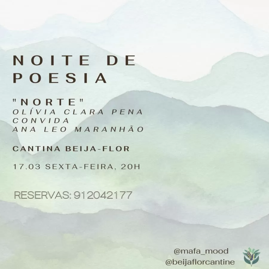 Noite de Poesia em Mafamood Olívia Clara Pena brinda-nos neste evento e trará convidado Jantar + Poesia 10 mafas Poesia 2.5 mafas