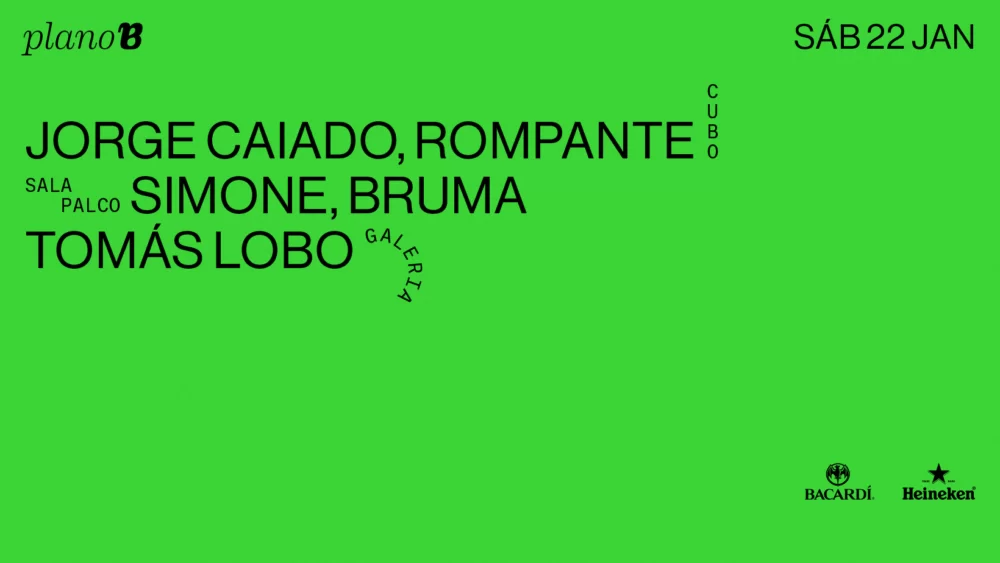 Jorge Caiado, Rompante; Simone, Bruma; Tomás Lobo 22 de Janeiro, no Plano B: Cubo: Jorge Caiado, Rompante Palco: Simone, Bruma Galeria: Tomás Lobo Data 22 Jan 2022 Desde Hora 22:00 Localização Plano B Rua Cândido dos Reis nº30 4050-150 Porto Website https://agendaculturalporto.org/agenda-plano-b-porto/ Categorias Clubbing | NightlifeConcertos / MúsicaEventos ao Fim de semana Share this event Newsletter Receba comodamente no seu Email os eventos mais relevantes da cidade do Porto. Deixe este campo vazio se for humano: