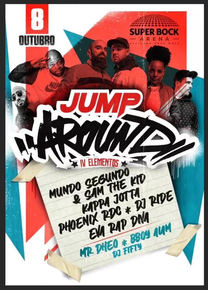 Na noite “Jump Around!” nome inspirado num dos maiores clássicos da cultura HipHop, apresentamos pela primeira vez num espetáculo criado em Portugal a junção dos 4 elementos num só espectáculo, com alguns dos seus maiores representantes a nível Nacional.