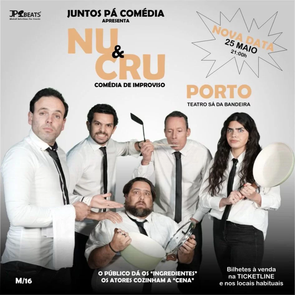 Depois de várias salas cheias em Lisboa, rumamos a Norte com o “Nu e Cru”, um espetáculo de comédia totalmente improvisado, onde cada momento é criado a partir das sugestões do público. Prometemos uma noite repleta de humor, surpresa e muita diversão!
