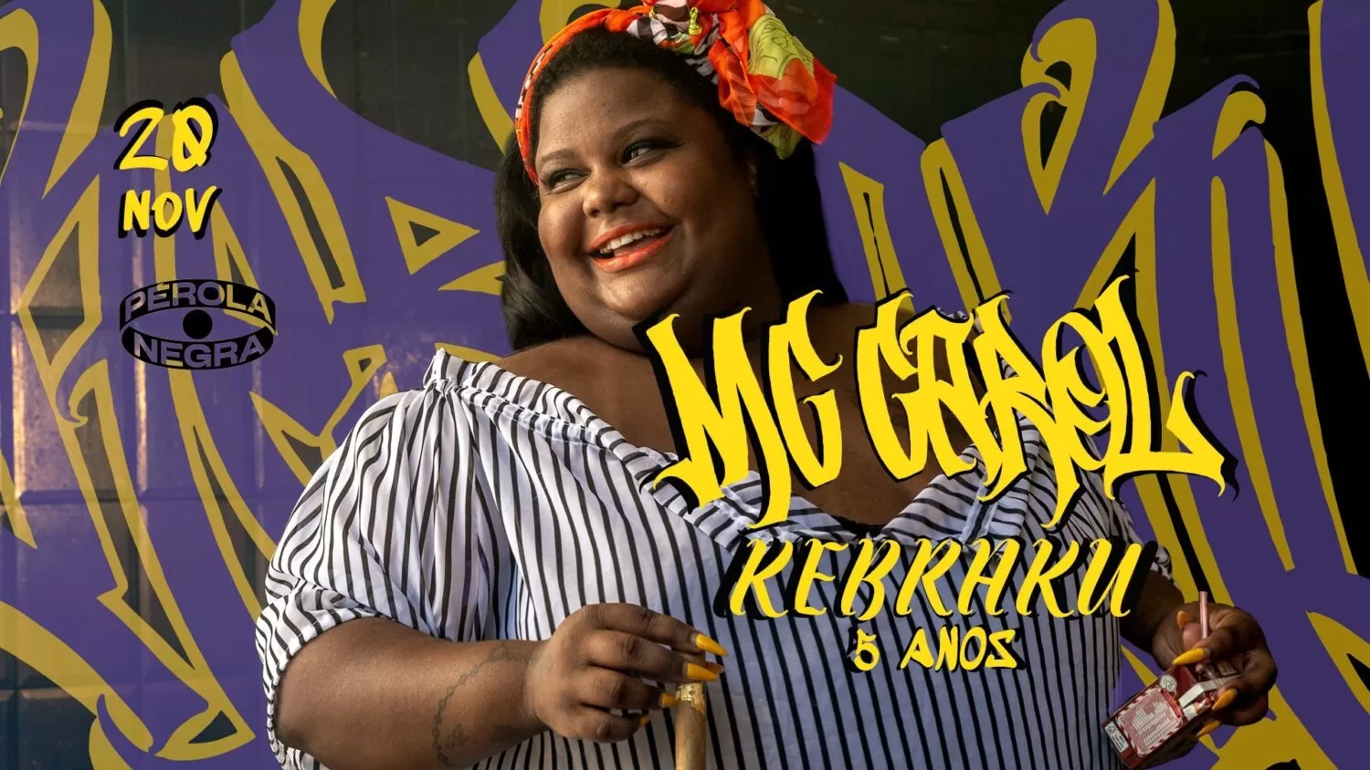 Nessa data tão especial, dia 20/11/2021, às 23h no Pérola Negra Club teremos KEBRAKU – MC CAROL – 5º aniversário.