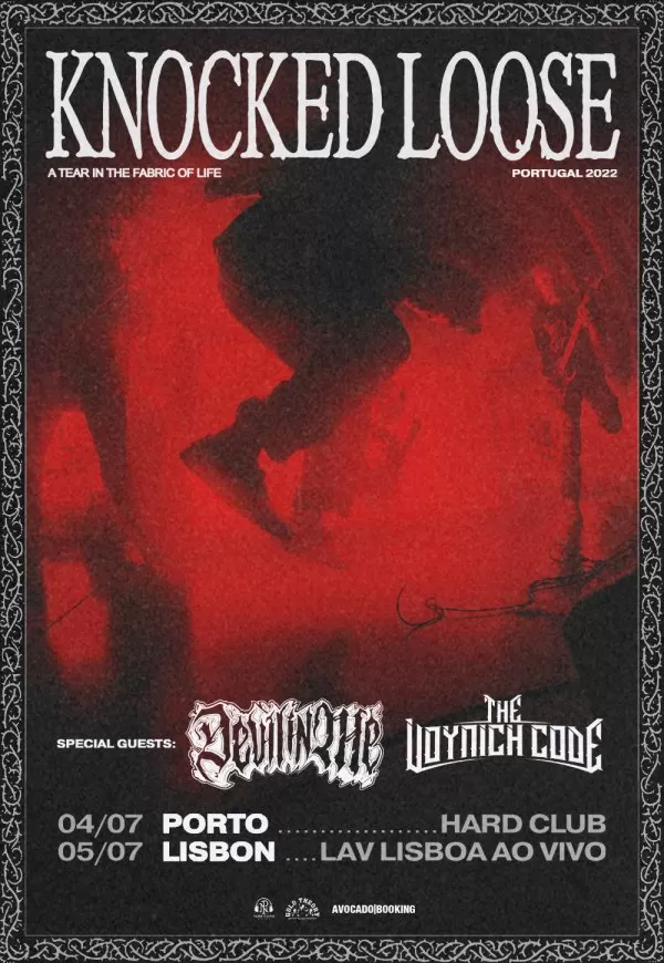 Apoiados em breakdowns do tamanho de mamutes, os norte-americanos KNOCKED LOOSE vão fazer-se de novo à estrada na Europa durante o próximo Verão e, pela primeira vez, aterram em Portugal, para protagonizarem uma data-dupla que se prevê verdadeiramente demolidora. Os músicos do Kentucky sobem aos palcos da Sala 2 do Hard Club, no Porto, e também da Sala 2 do LAV- Lisboa ao Vivo, a 4 e 5 de Julho, respetivamente. As primeiras partes de ambos os concertos serão asseguradas pelos nacionais DEVIL IN ME e THE VOYNICH CODE, duas provas irrefutáveis de que, por cá, seja no hardcore mais próximo da matriz ou na fusão deste com o metal mais contemporâneo, há muita energia contagiante para expurgar também.