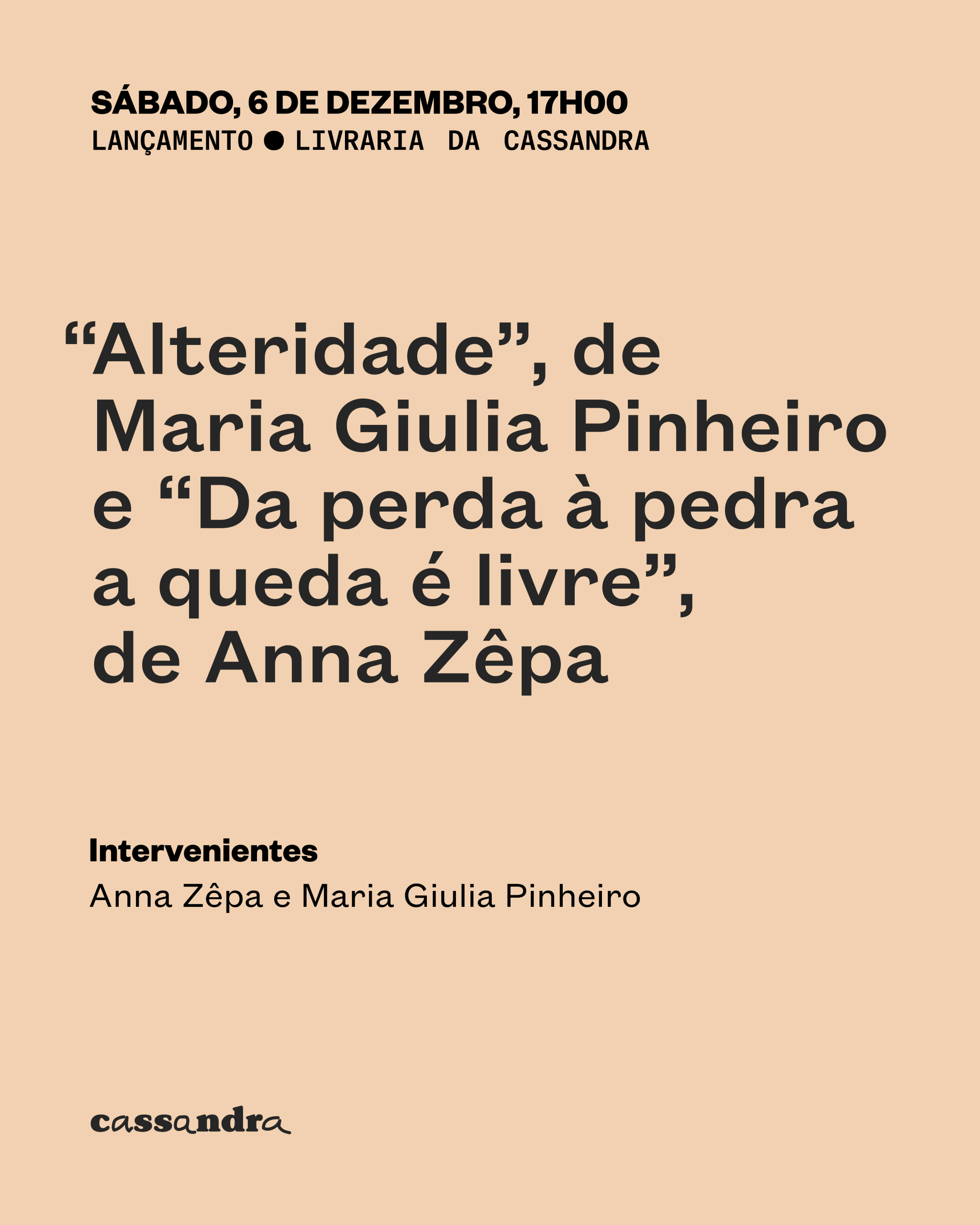 Lançamento de “Alteridade”, de Maria Giulia Pinheiro e “Da perda à pedra a queda é livre”, de Anna Zêpa