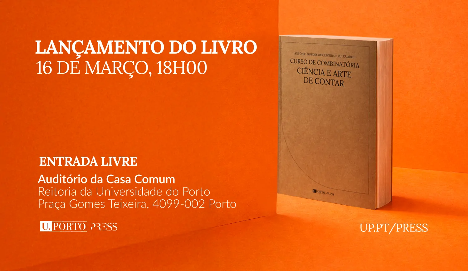 Com moderação de Fátima Vieira, Vice-Reitora da U.Porto responsável pela U.Porto Press, a sessão de lançamento do livro, marcada para 16 de março, às 18h00, na Reitoria da U.Porto, contará com intervenções dos autores e de Pedro Silva (autor do Prefácio) e Samuel Lopes, professores na FCUP e investigadores do Centro de Matemática da Universidade do Porto, convidados para apresentar o livro.