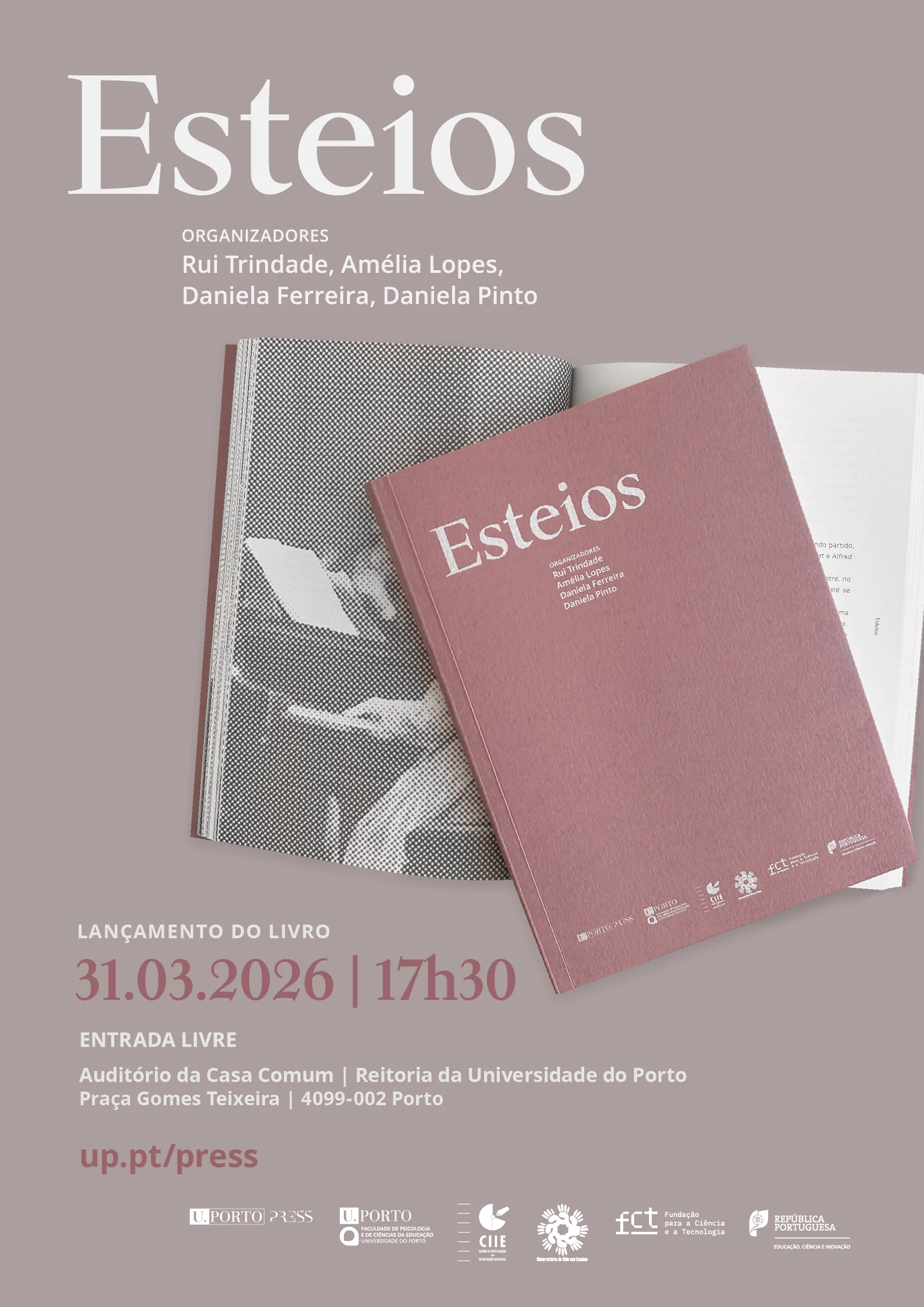 O lançamento de Esteios decorrerá a 31 de março, a partir das 17h30, no Auditório da Casa Comum, à Reitoria da Universidade do Porto.