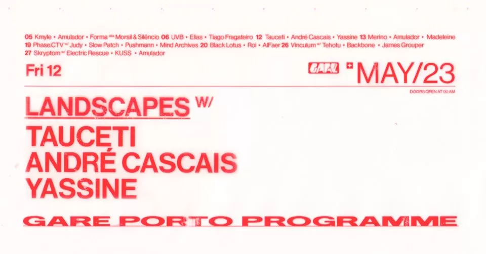 Com um 1º EP editado recentemente na 30D Records de Angel Molina, Tauceti estreia-se entre nós pelas mãos da Landscapes, acompanhada por André Cascais e Yassine.