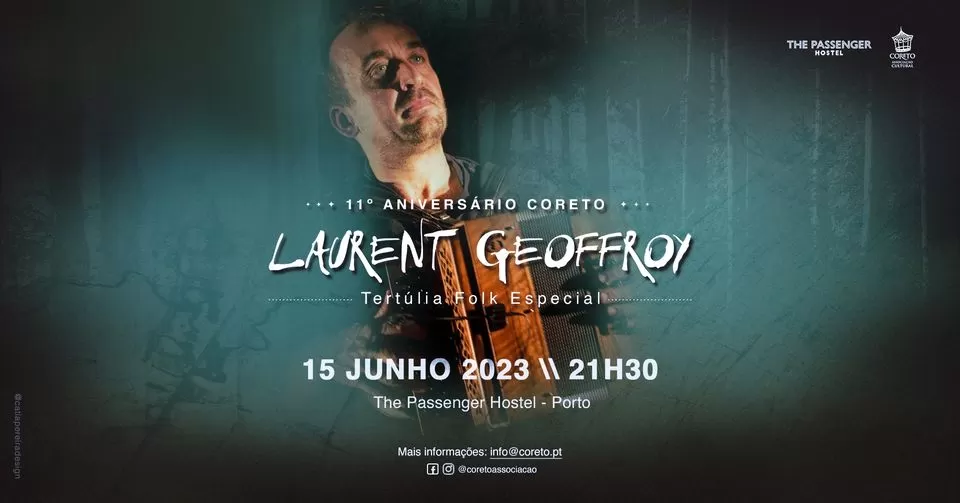 Nesta Tertúlia Folk Especial, festejaremos o 11º aniversário com o Concerto de Laurent Geoffroy. Será uma noite memorável!