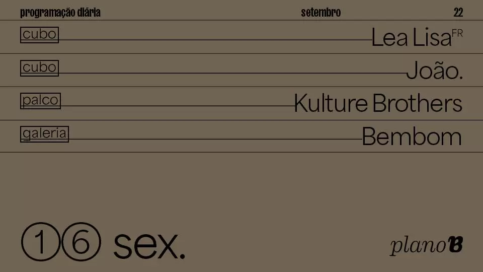 Lea Lisa João. Kulture Brothers Bembom Lea Lisa João. Kulture Brothers Bembom Data 16 Set 2022 Desde Hora 22:00 Localização Plano B Rua Cândido dos Reis nº30 4050-150 Porto Website https://agendaculturalporto.org/agenda-plano-b-porto/ Categorias Clubbing | NightlifeConcertos / Música Share this event Newsletter Receba comodamente no seu Email os eventos mais relevantes da cidade do Porto. Deixe este campo vazio se for humano: