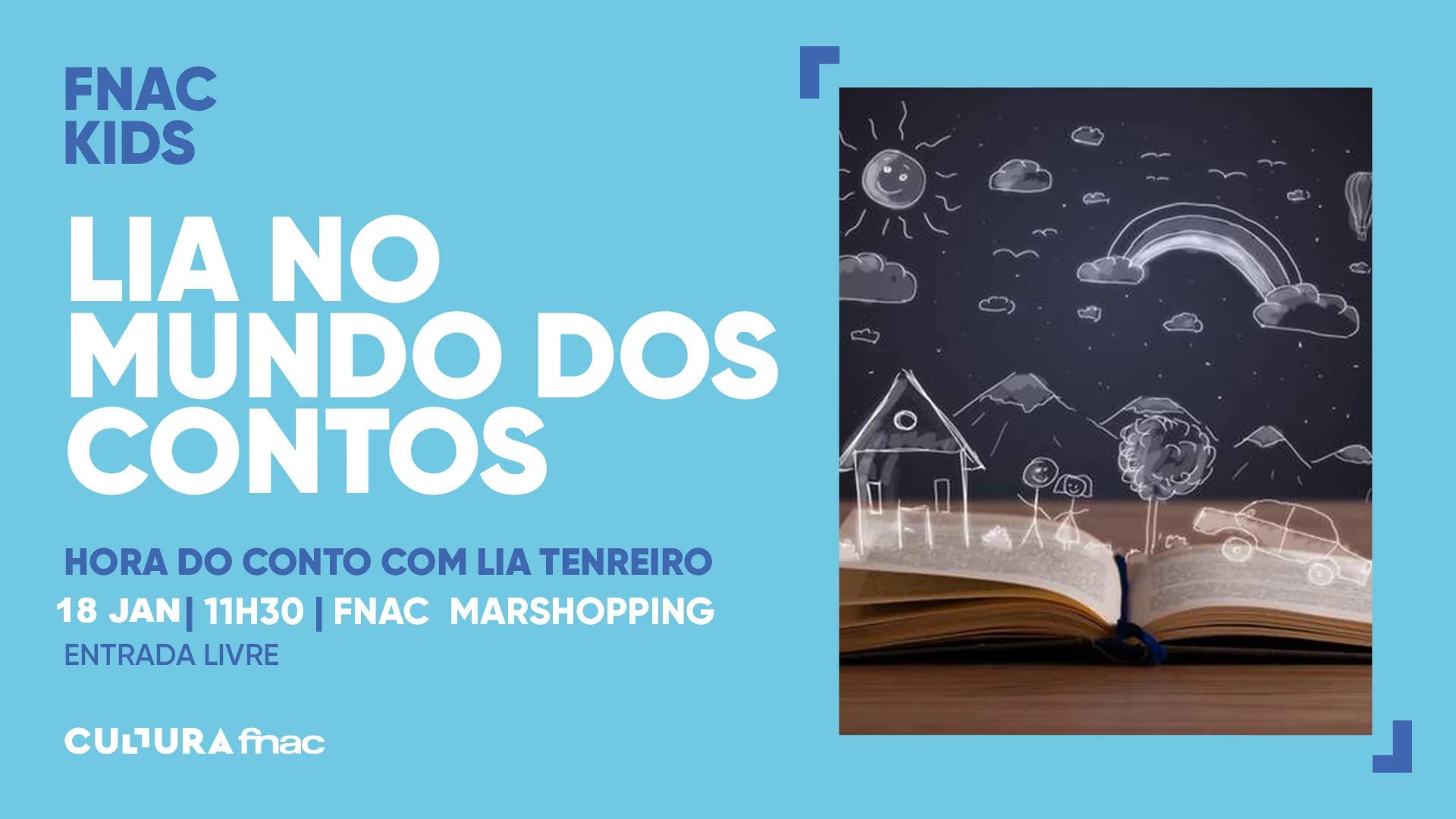 A FNAC continua a brindar o seu público mais jovem com o espaço infantil que ilumina o imaginário dos miúdos e deixa sempre um sorriso nos graúdos. Lia Tenreiro dá voz e movimento, tanto a contos clássicos, como aos novos autores que vão brilhando no reino infantil. Um momento de partilha de emoções para toda a família.
