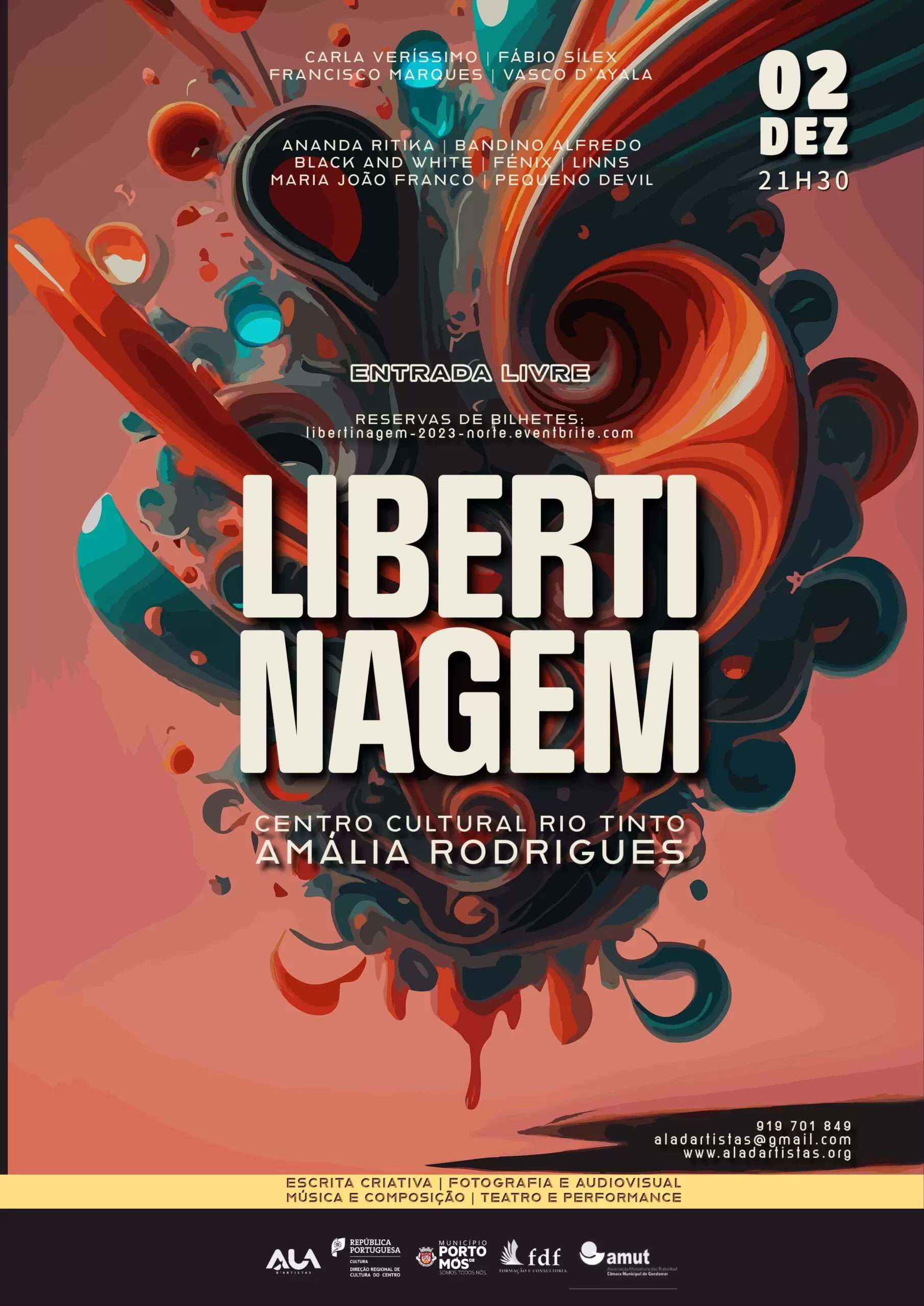 Deixe-se envolver pela magia da libertinagem, explore fronteiras da liberdade e mergulhe no universo artístico criado por mentes brilhantes. Numa noite mágica no Centro Cultural Rio Tinto Amália Rodrigues, mergulhe nas profundezas da expressão artística no Libertinagem 2023.