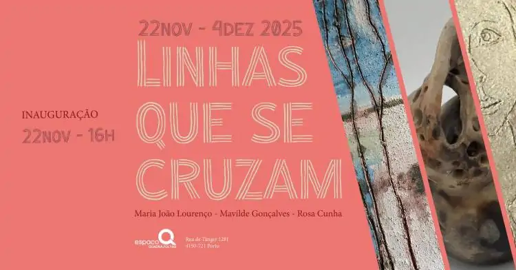 De 22 de novembro a 4 de dezembro de 2025, das 16h00 às 19h00, o Espaço Q / QuadraSoltas (Rua de Tânger 1281, Porto) recebe a exposição coletiva Linhas que se cruzam, com trabalhos das artistas Maria João Lourenço, Mavilde Gonçalves e Rosa Cunha.