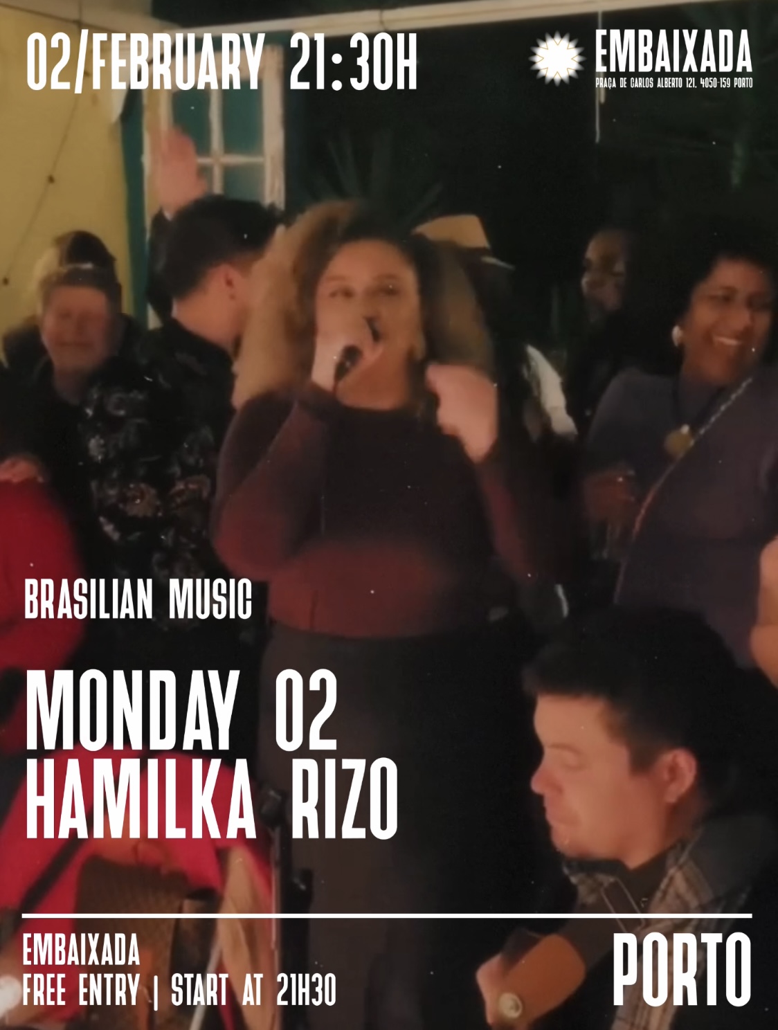 Live Music all week – HAMILKA RIZO Live Music all week – HAMILKA RIZO + Adicionar ao Google Calendar Data 02 Fev 2026 Hora 21:30 - 23:55 Localização Embaixada do Porto Praça de Carlos Alberto 121, 4050-526 Porto Categorias Concertos / Música Share this event Newsletter Receba comodamente no seu Email os eventos mais relevantes da cidade do Porto. Deixe este campo vazio se for humano: