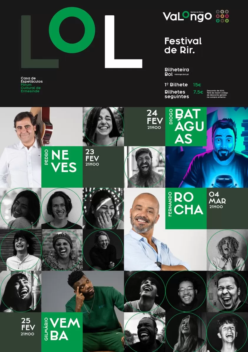 O Fórum Cultural de Ermesinde volta a ser palco do LOL Festival de Rir nos dias 23, 24, 25 de fevereiro e 4 de março. Com a presença de Pedro Neves, Diogo Batáguas, Gilmário Vemba e Fernando Rocha esta quinta edição promete fazer rir a bom rir.