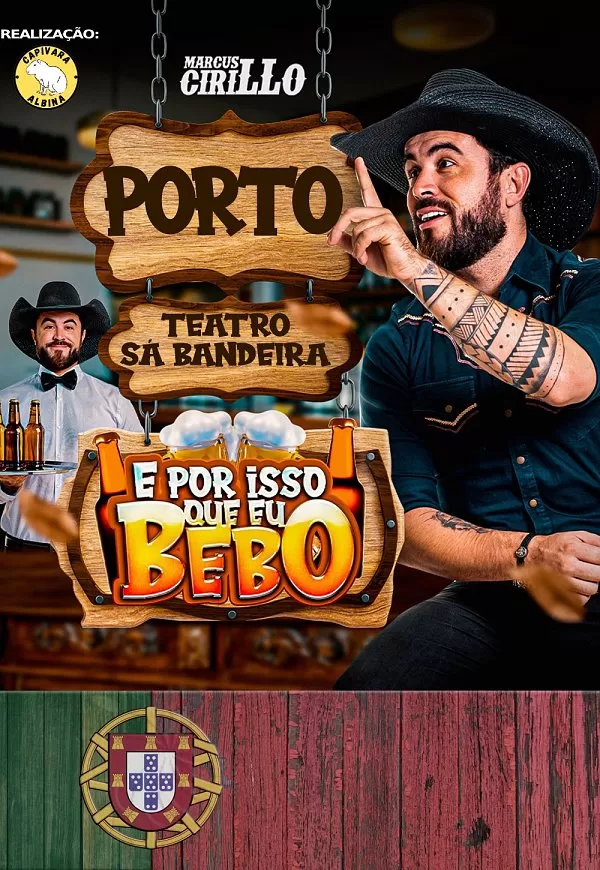E Porto é das paradas! Marcus vem pela primeira vez pra Europa com seu show solo de comédia stand up “É por isso que eu bebo”.