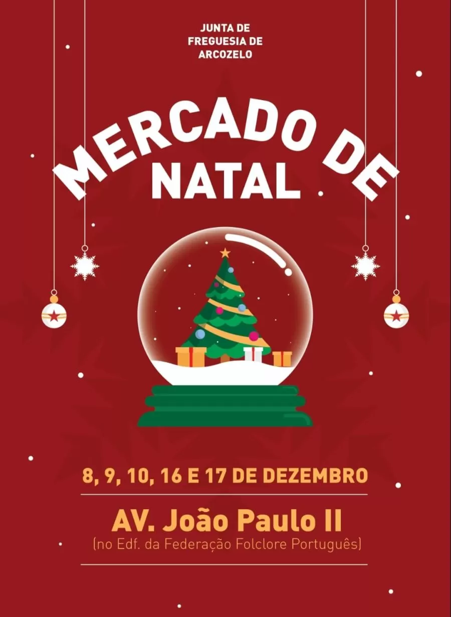 Mercado de Natal de Arcozelo 2023 Este ano contamos com uma grande afluência de expositores. Este ano o mercado de Natal 🎅 🎄terá lugar nos dias 8, 9, 10 e 17 e 18 de Dezembro. Com mais de 80 expositores conta com uma Praça de Alimentação. Aqui poderá comprar as suas prendinhas de Natal 🎁 e ajudar os Artesãos que, com a sua criatividade, vão torná-lo mais especial.