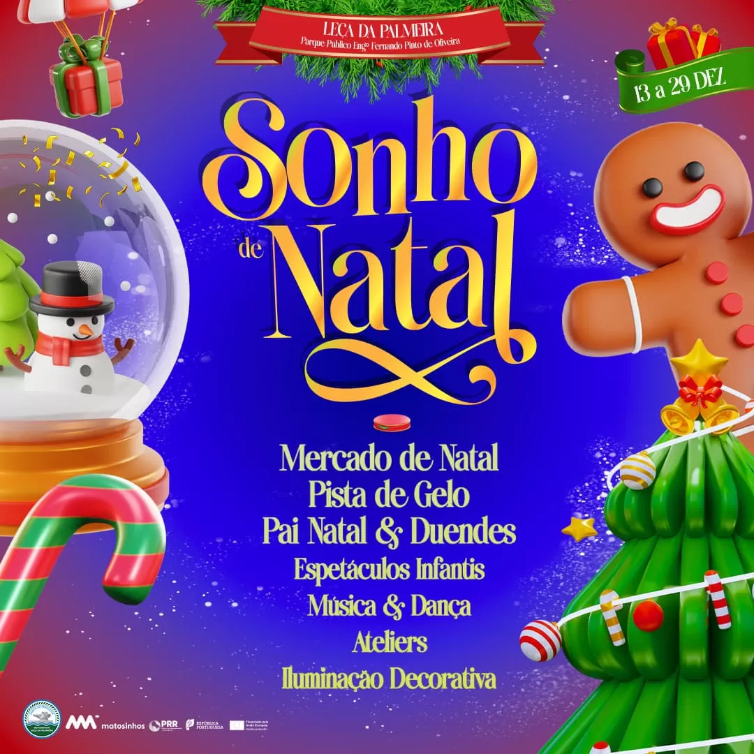 The Sonho de Natal 2024 (Christmas Dream) arrives in Leça da Palmeira, with a charming cultural program organized by the Junta de Freguesia of Matosinhos and Leça da Palmeira. From December 13th to 22nd, the Public Park Eng.º Fernando Pinto de Oliveira will be the heart of the festive celebrations, featuring a variety of activities and events for the whole family.