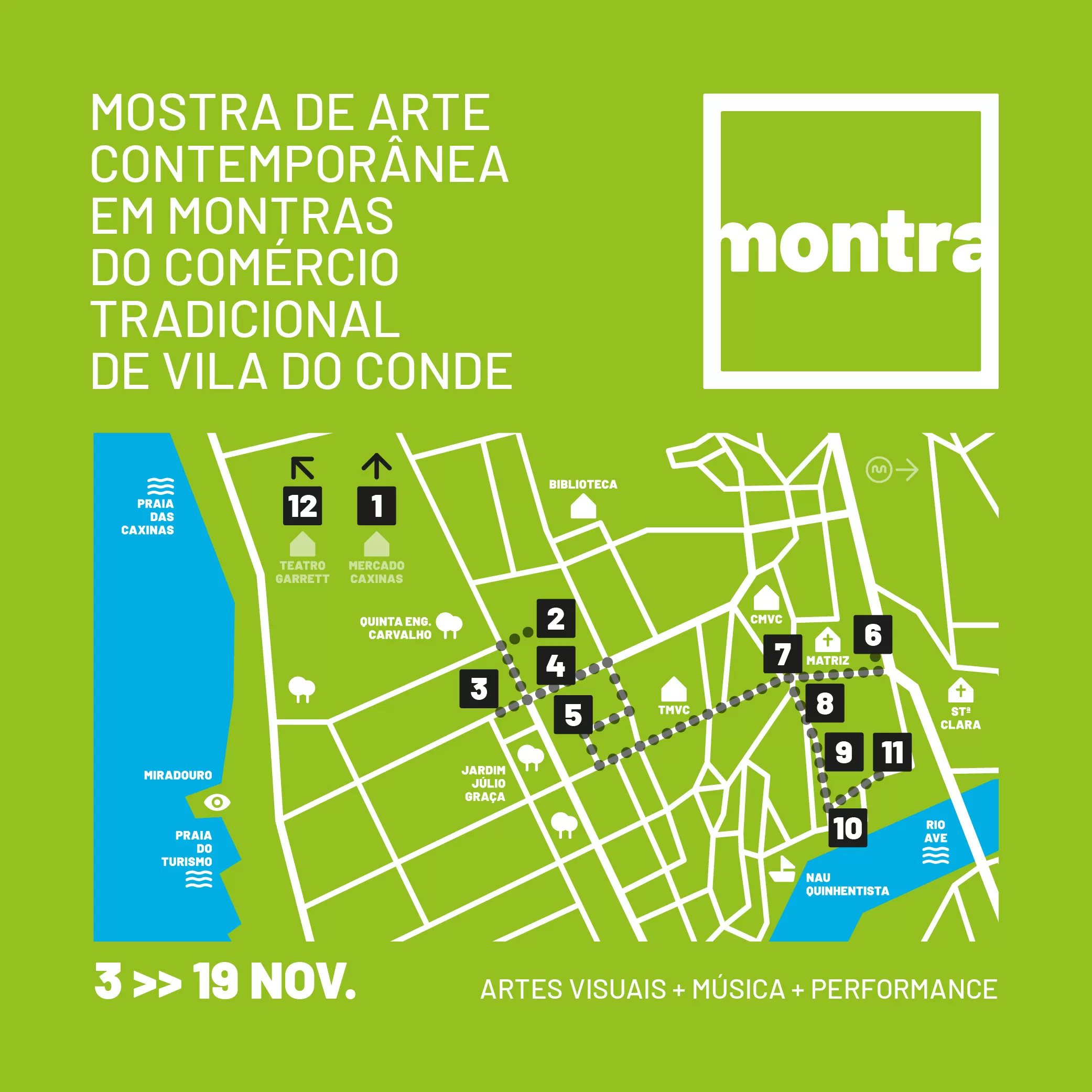 A montra – mostra de arte contemporânea em montras do comércio tradicional de Vila do Conde é isso mesmo: um projecto que se propõe fazer chegar a arte a todas as pessoas, muitas delas sem hábitos de consumo cultural. A montra apresenta anualmente um conjunto de intervenções expositivas e performativas que exploram diferentes possibilidades de ocupação do espaço público e envolvimento da comunidade, numa dinâmica de circulação pedonal pela cidade e de colaboração entre artistas e comerciantes. Os projectos artísticos propostos são transdisciplinares e podem ir das artes performativas, artes plásticas, circo, dança, design, escultura, figurinos e cenografia, fotografia, literatura, música, poesia, teatro até ao vídeo.
