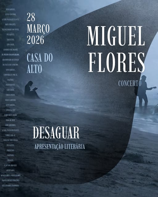 Às 21:40 terá início o concerto de Miguel Flores, que apresenta ao vivo o seu álbum de estreia “Tudo o que me aleijou era bonito” (2025). O músico, natural de Vila Nova de Gaia, desenvolve um registo centrado na voz e na guitarra, com uma abordagem emocional direta que cruza vulnerabilidade e intensidade.