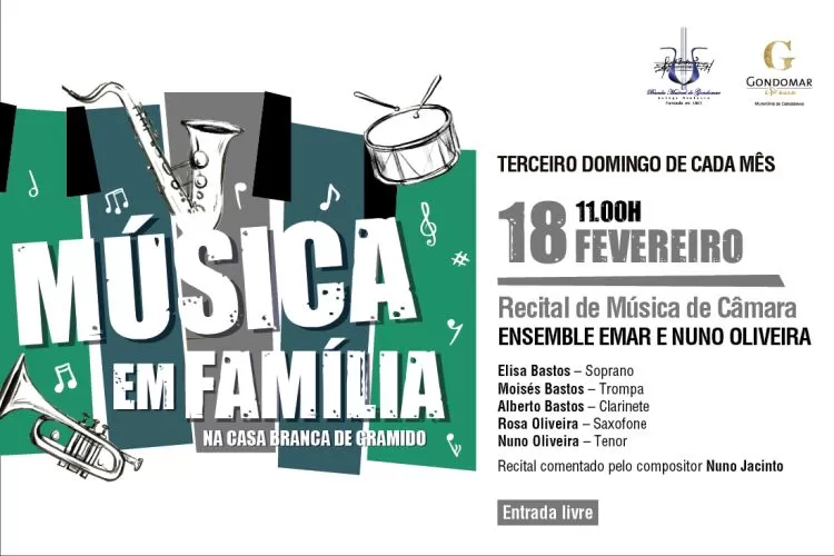 A Casa Branca de Gramido acolhe, no dia 18 de fevereiro, o recital de música de câmara, integrado no ciclo de concertos “MÚSICA EM FAMÍLIA”, promovido pelo Município de Gondomar em parceria com a Banda Musical de Gondomar.