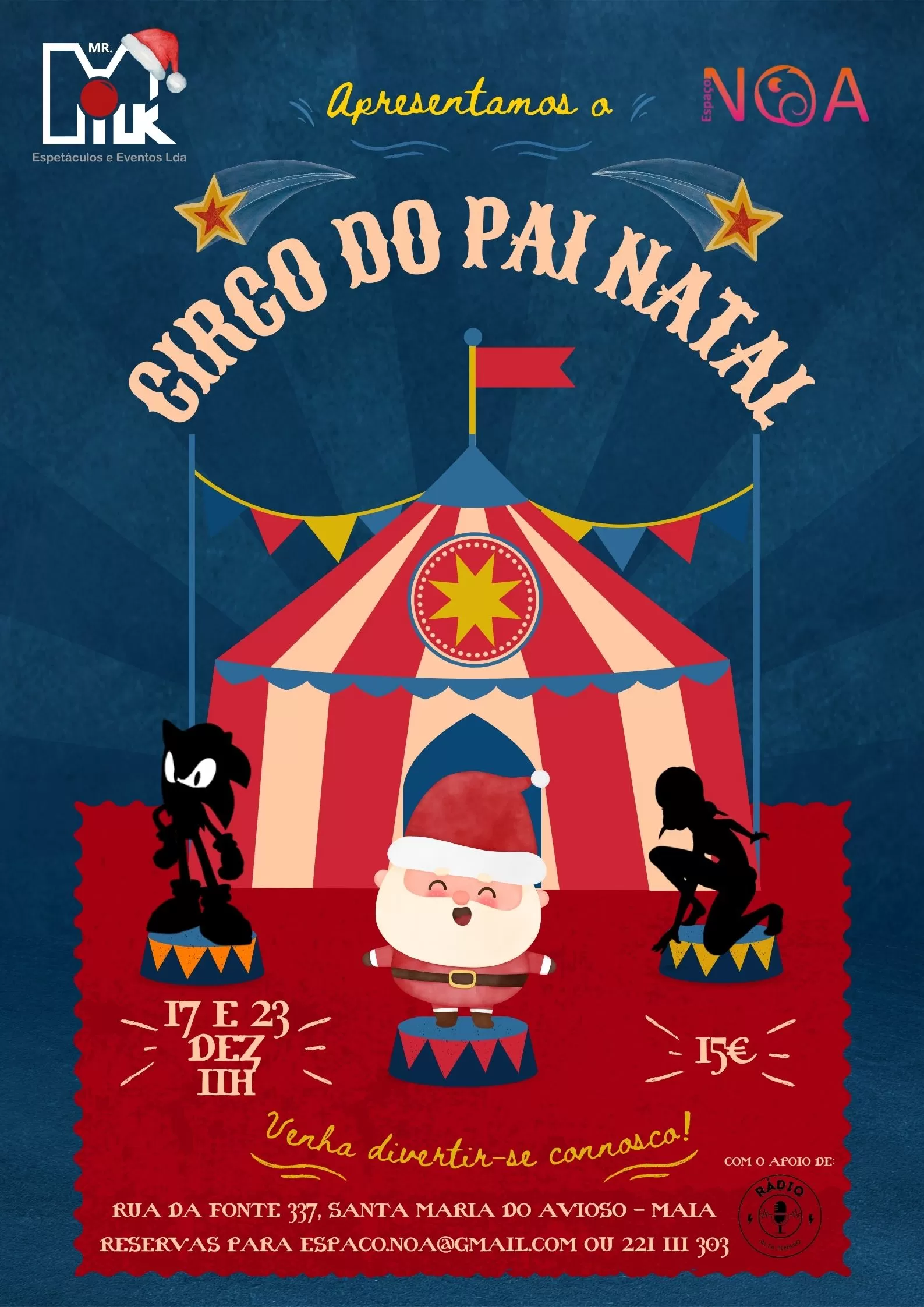 Venha ver o nosso “Circo do Pai Natal”, onde o Pai e a Mãe Natal terão uma aventura bastante animada com os Duendes da fábrica dos brinquedos.