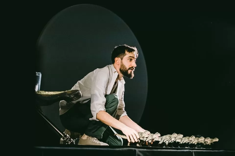 Até que ponto objectos do nosso quotidiano podem ser responsáveis por grandes catástrofes naturais? Qual o impacto das nossas acções no outro lado do planeta? O Estado do Mundo (Quando Acordas) coloca em cena relações de causa-efeito entre pequenos gestos e grandes consequências. Edi é um rapaz de 8 anos com uma vida muito preenchida. Todos os dias consome e descarta muitas coisas, até que recebe um b̶r̶i̶n̶q̶u̶e̶d̶o̶ convite inesperado. Nesse momento, inicia uma viagem por um mundo invisível aos seus olhos, marcado pela crise climática. Num mundo desacertado, é preciso olhar para o passado e fazer com que tudo bata certo no futuro. O tempo está sempre a contar. O Estado do Mundo (Quando Acordas) é o primeiro espectáculo de um díptico que se destina a pensar o estado do mundo – natural, político, geográfico, social, histórico, económico e humano.