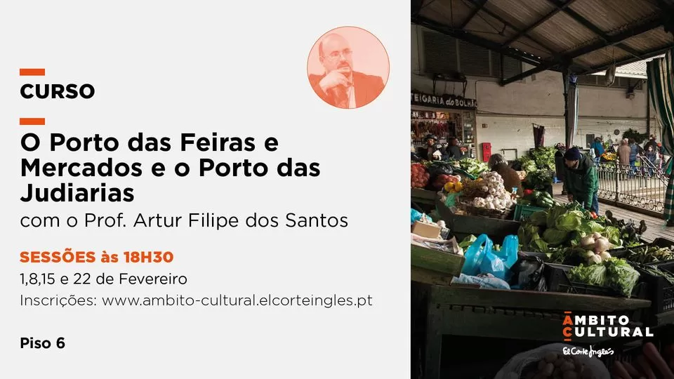 O Âmbito Cultural do El Corte Inglés de Gaia tem o prazer de convidar para o curso O Porto das Feiras e Mercados e o Porto das Judiarias lecionado por Artur Filipe dos Santos.