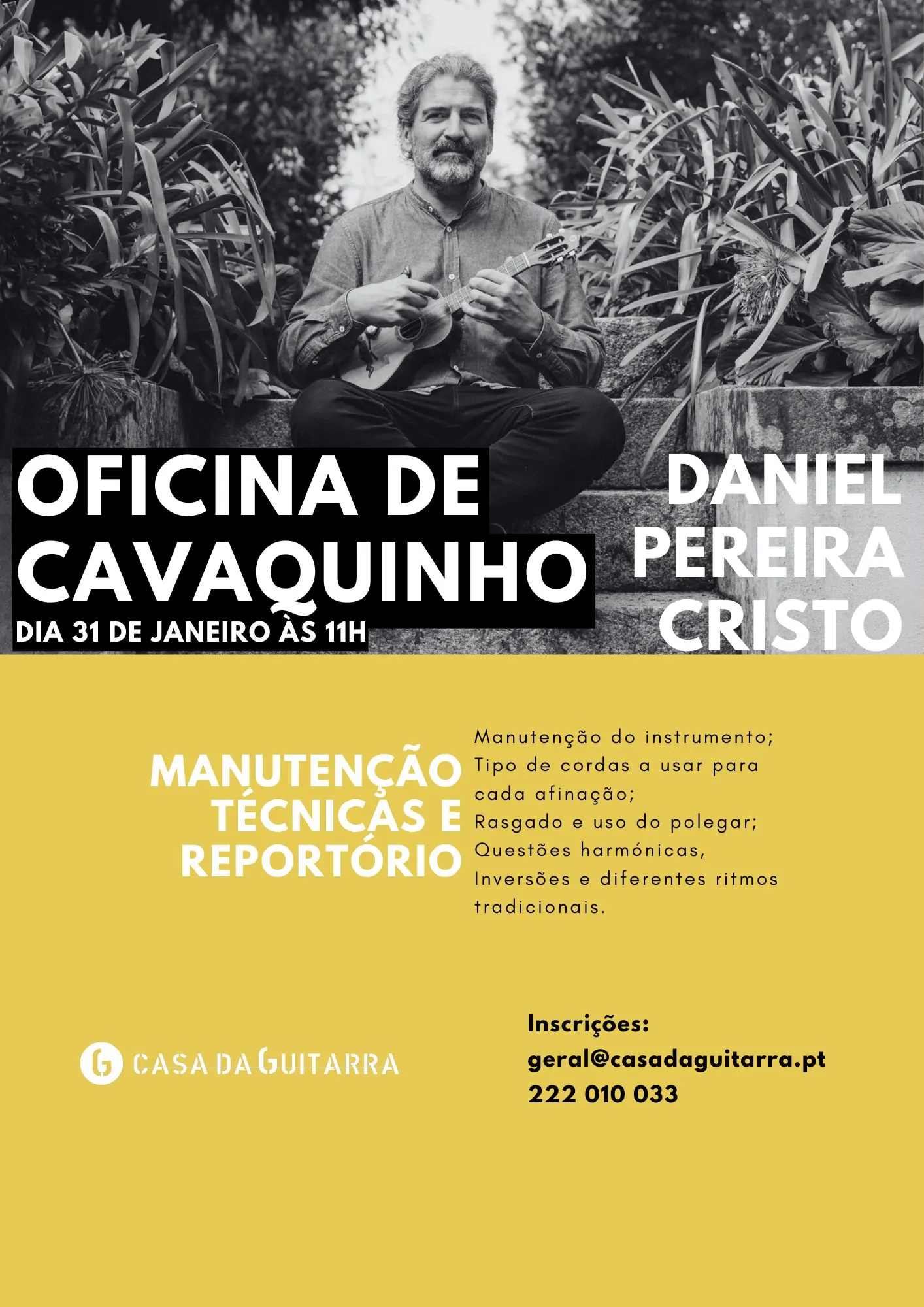 A Casa da Guitarra recebe no seu espaço uma oficina dedicada ao cavaquinho, conduzida por Daniel Pereira Cristo — músico bracarense, investigador dos cordofones tradicionais portugueses e referência no universo do cavaquinho.