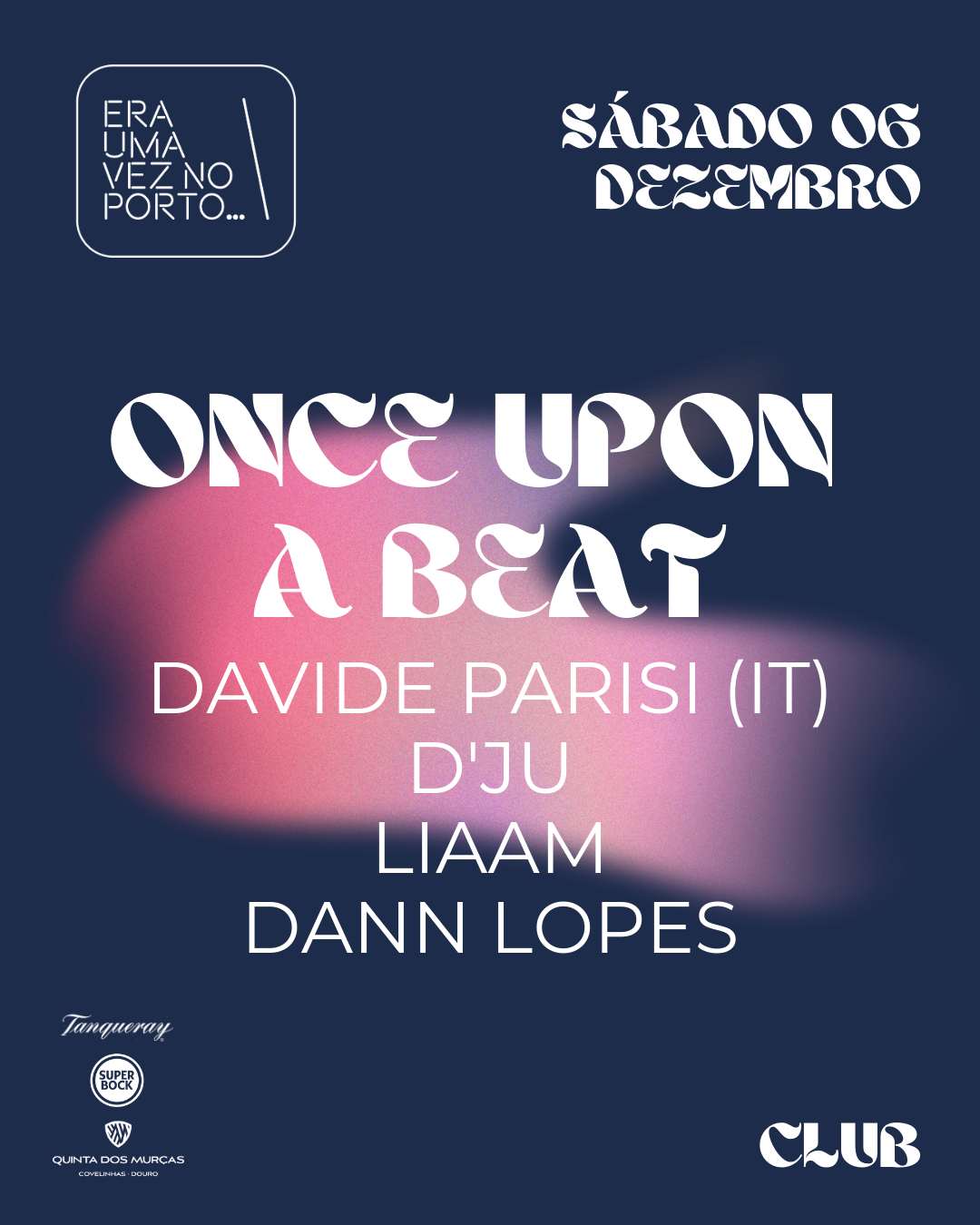 ONCE UPON A BEAT … Sábado, 06|12|2025 ONCE UPON A BEAT 🎧 Davide Parisi (IT) 🎧 D’Ju 🎧 Liam 🎧 Dann Lopes . . + Adicionar ao Google Calendar Data 06 - 07 Dez 2025 Hora 23:55 - 6:00 Localização Era uma vez no Porto R. da Madeira 126, 4000-330 Porto Categorias Clubbing | NightlifeEnglish-Friendly EventsEventos ao Fim de semana Share this event Newsletter Receba comodamente no seu Email os eventos mais relevantes da cidade do Porto. Deixe este campo vazio se for humano: