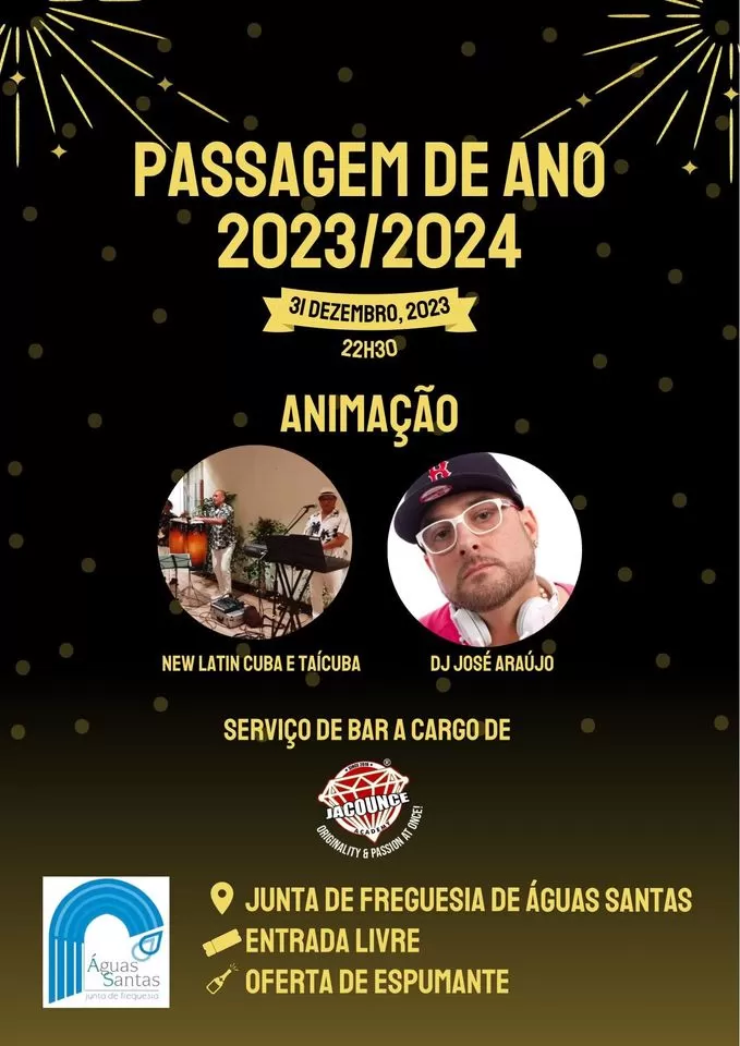Passagem de Ano, na Junta de Freguesia de Águas Santas, com oferta de Espumante às doze badaladas.