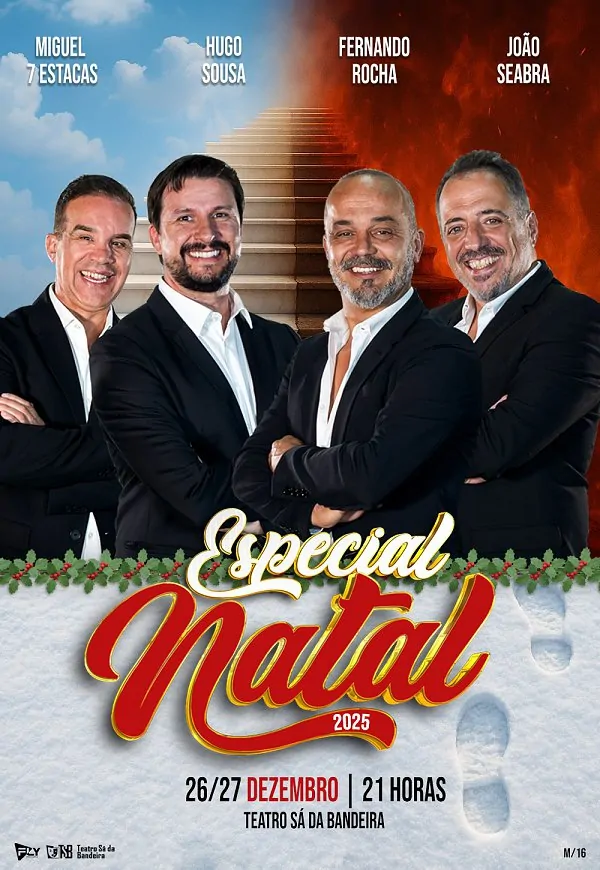 O espetáculo “Pi100Pé Especial de Natal 2025” regressa ao Porto para animar o público com uma noite repleta de humor natalício. No palco do Teatro Sá da Bandeira, os comediantes Fernando Rocha, Hugo Sousa, João Seabra e Miguel 7 Estacas apresentam novas rábulas, stand-up comedy, sketchs e anedotas, tendo como único tema: o Natal. Comédia popular garantida para proporcionar muitas e boas gargalhadas.