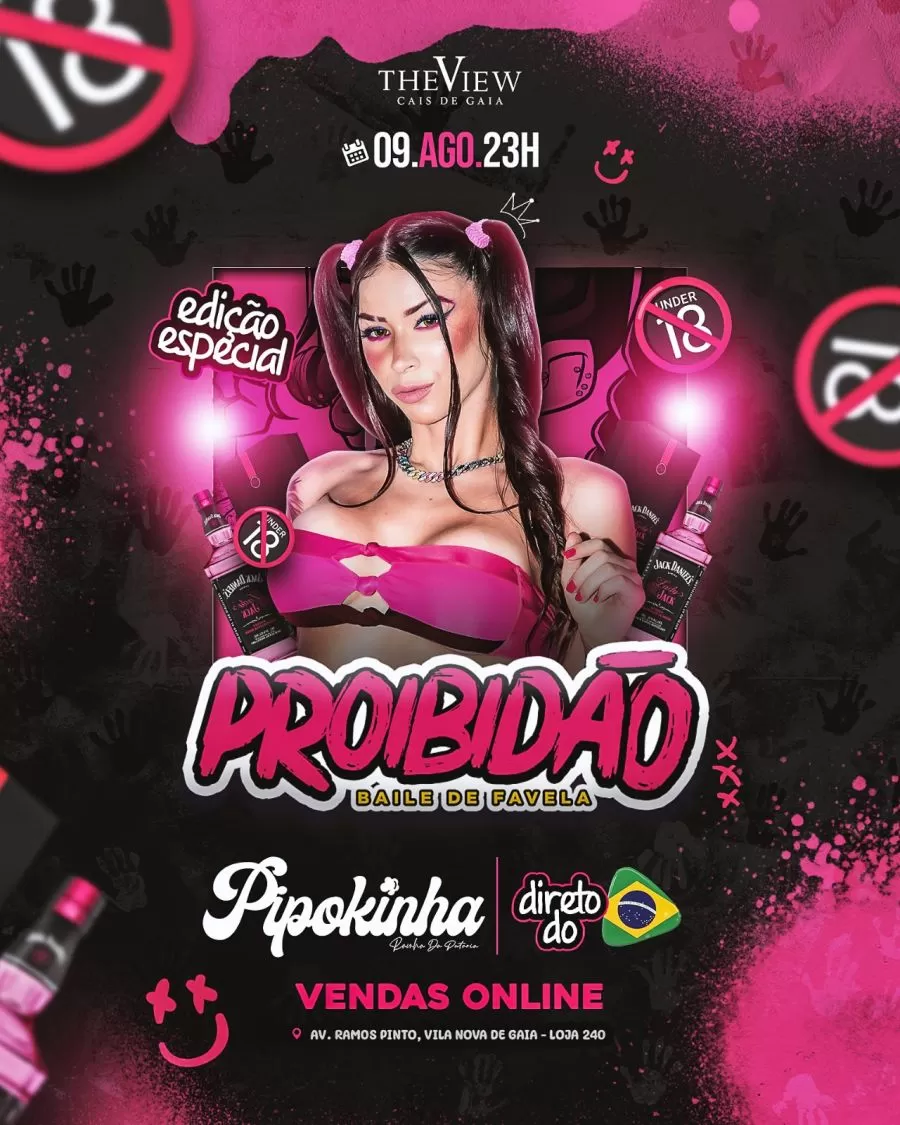 📆 PROIBIDÃO com MC PIPOKINHA | Dia 09 de Agosto (sexta-feira), das 23h às 06h 📌 PISTA I (360º) – 2º ANDAR 📍 Av. Ramos Pinto, 240, Cais de Gaia Dúvidas e mais informações via inbox.