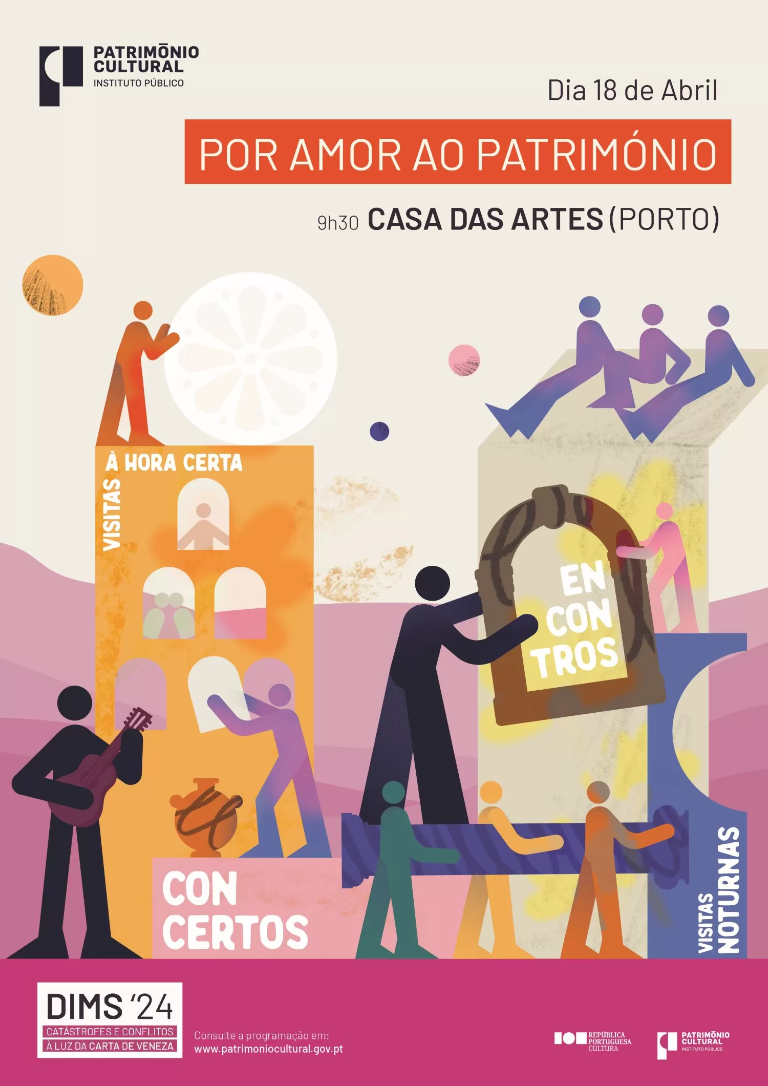 No Dia Internacional dos Monumentos e Sítios 2024, 18 de abril, o Património Cultural, Instituto Público, promove o Encontro Nacional “Por Amor ao Património”, dedicado à reflexão conjunta sobre o papel dos cidadãos e das associações de defesa e valorização do património nas estratégias de mitigação das catástrofes e conflitos que o vitimam, à luz da Carta de Veneza.