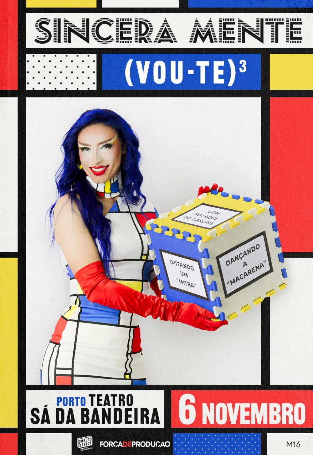 O espetáculo “(Vou-te)³”, da Drag Queen e comediante Sincera Mente, chega ao Porto no dia 6 de novembro, às 21h00, na Teatro Sá da Bandeira. Classificado para maiores de 16 anos, o espetáculo promete uma noite de humor irreverente e participação ativa do público.