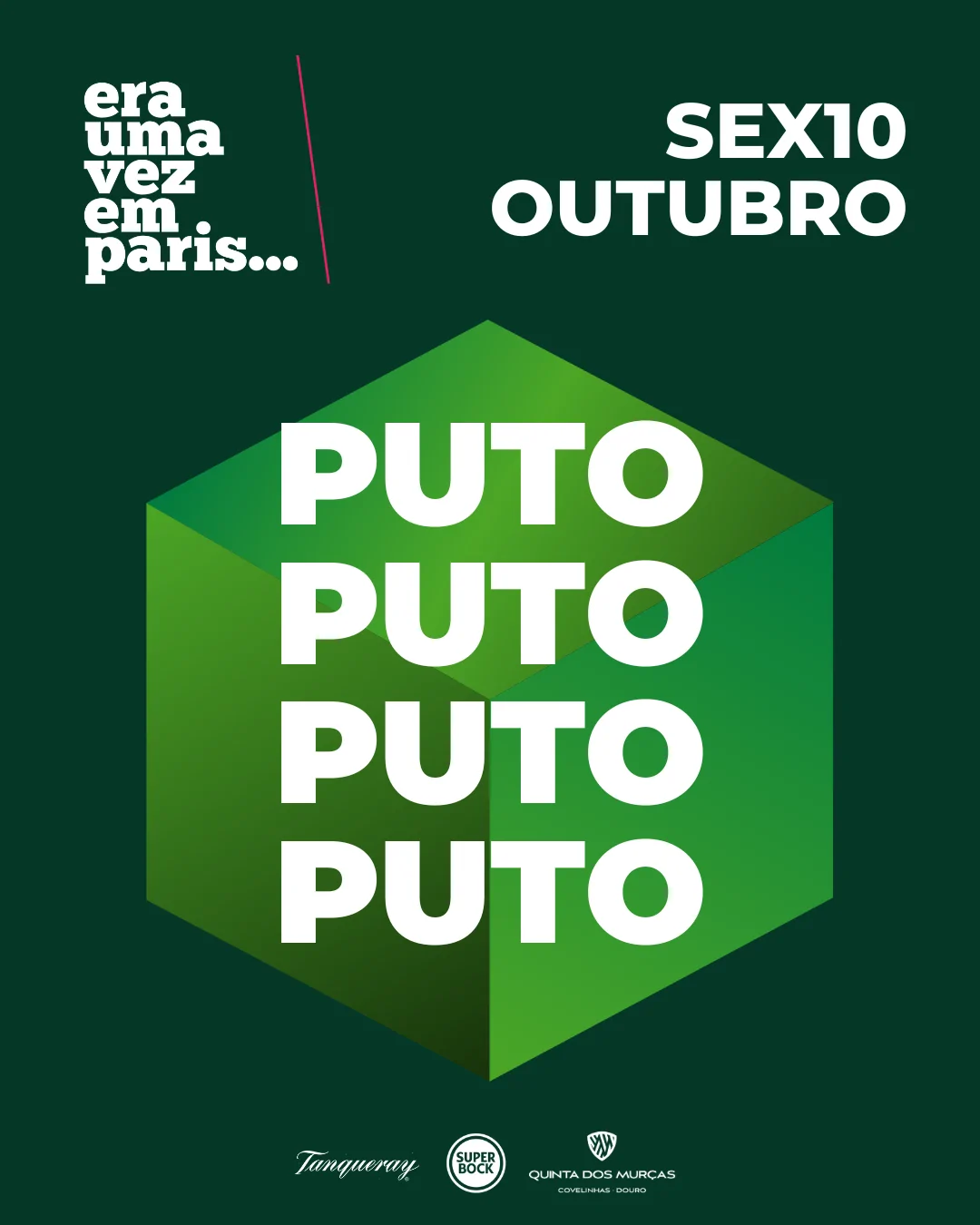 Puto @ Era uma vez em Paris Sexta-feira, 10|10|2025 22:30 – 04:00 🎧 Puto . + Adicionar ao Google Calendar Data 10 - 11 Out 2025 Hora 22:30 - 4:00 Localização Era Uma Vez Em Paris R. Galeria de Paris, n.º 106-108 Porto, Portugal Categorias Clubbing | NightlifeEnglish-Friendly Events Share this event Newsletter Receba comodamente no seu Email os eventos mais relevantes da cidade do Porto. Deixe este campo vazio se for humano: