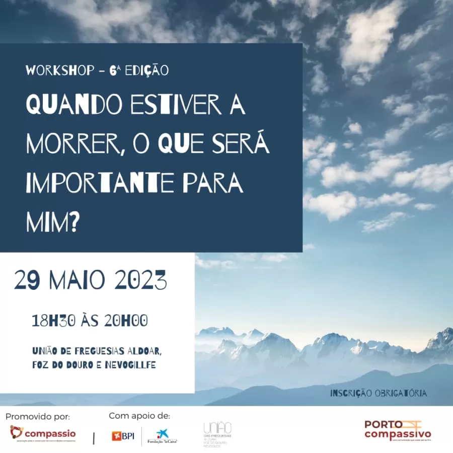 As conversas sobre o fim de vida nunca são fáceis, numa sociedade onde a morte ainda é um tabu. Queremos conversar sobre este tema através de um jogo de cartas, e refletir sobre o que verdadeiramente será importante, para cada pessoa, no tempo de fim de vida. Quer vir jogar e partilhar conosco? Destinatários: Todos! Facilitadora: . Mariana Abranches Pinto – É presidente da Compassio, coordenadora do projeto Porto Compassivo e do projeto Vizinhos Compassivos, e é responsável nacional do Grupo ao 3º dia. Orienta retiros de silêncio e faz acompanhamento espiritual. Os seus campos de interesse são as comunidades compassivas, os cuidados paliativos, a medicina narrativa e a espiritualidade no mundo da saúde.