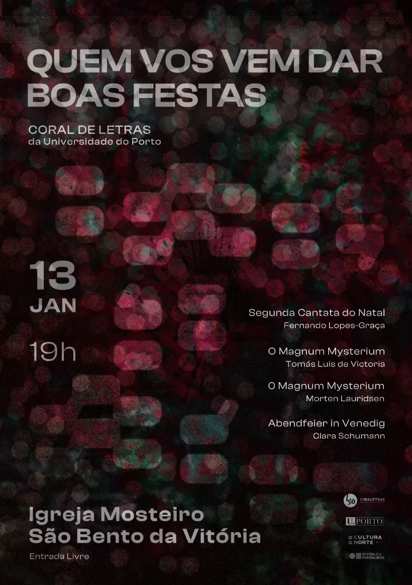 A Igreja do Mosteiro de São Bento da Vitória, no coração do Porto, acolhe no próximo sábado, dia 13 de janeiro, o concerto de encerramento da época festiva “Quem Vos Vem Dar Boas Festas”, do Coral de Letras da Universidade do Porto.
