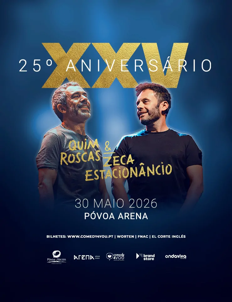 No dia 30 de maio de 2026, a icónica dupla de humor Quim Roscas & Zeca Estacionâncio sobe ao palco da Póvoa Arena, na Póvoa de Varzim, para um espetáculo especial que assinala 25 anos de carreira.