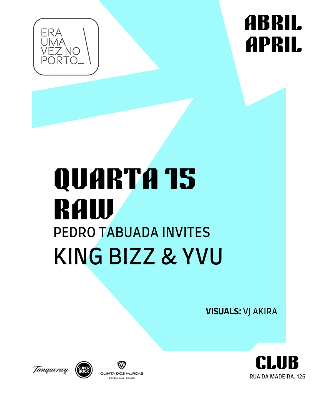 R4W … Quarta-feira, 15/04/2026 23h59/6h00 R4W 🎧 Pedro Tabuada invites 🎧 King Bizz & Yvu 🎬 VJ Akira . . + Adicionar ao Google Calendar Data 15 - 16 Abr 2026 Hora 23:55 - 6:00 Localização Era uma vez no Porto R. da Madeira 126, 4000-330 Porto Categorias Clubbing | NightlifeEnglish-Friendly Events Share this event Newsletter Receba comodamente no seu Email os eventos mais relevantes da cidade do Porto. Deixe este campo vazio se for humano: